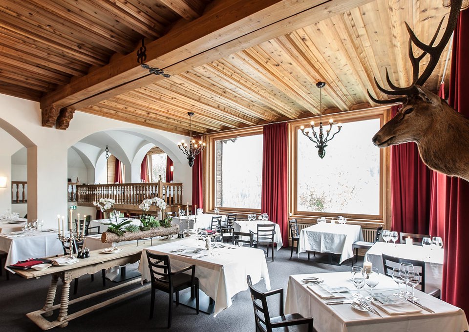 Do you love Engadine romance? Then our Engadine boutique hotel GuardaVal is the right wedding location for you. Welcome your guests to the aperitif in the authentic «Döss» hall in the 400-year-old Engadine house or in the romantic Cheminée Bar with its terrace and magnificent view over Scuol and the mountains. Afterwards, enjoy your wedding dinner with the wedding menu of your choice in the Engadine gourmet restaurant.