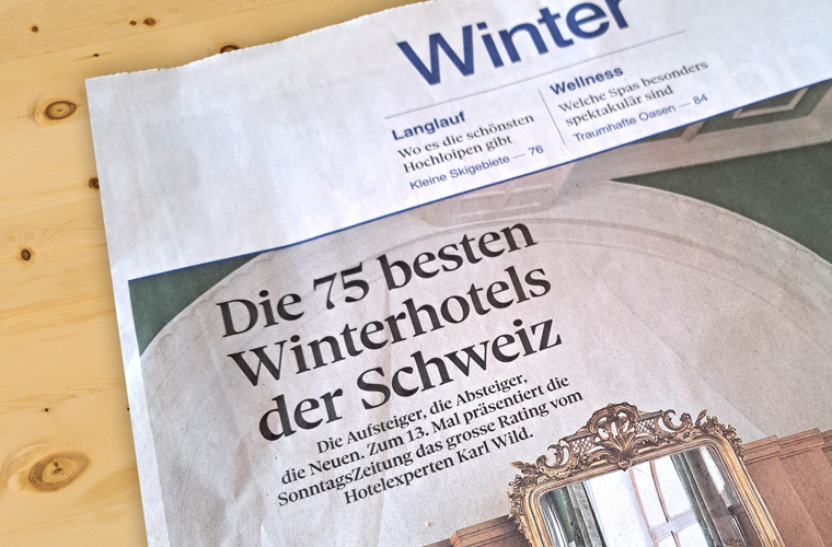 In the current rating of the «75 best winter hotels» in the Sonntagszeitung, we were able to maintain our position among the «25 best winter hotels with 4 stars» again this year, which we are very pleased about.